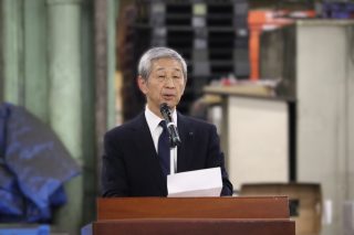 来賓並びに市場関係者他、多数のご出席のもと、開設者として武内市長に新年のご挨拶を 頂戴し、市場協会会長として弊社の百合野社長が挨拶を行いました。